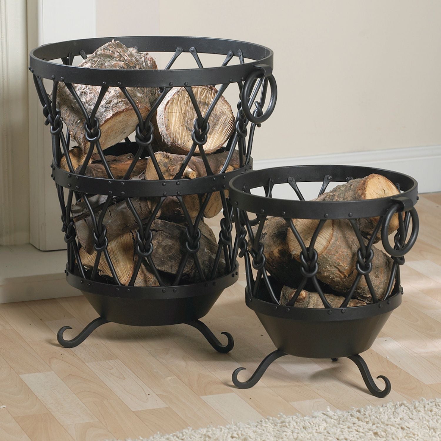 Inspired by Nordic design and from robust wrought iron and powder-coated in a timeless black for enhanced durability. This log store is adorned with beautifully classical, handcrafted knot detailing, meticulously crafted from twisted iron, creating a unique piece.